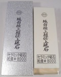 超仕上砥石 粒度:8000番 有力微粉メーカーのWA#8000を主原料に、特殊製法にてより天然砥石に近づけた画期的仕上砥石です。 研磨力・刃付、粒子の細かさは他の追随を許しません。